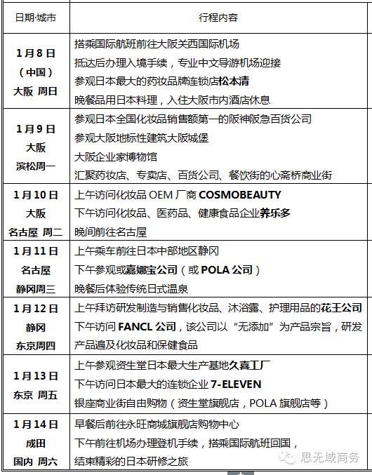 主办方需要在11月底组团工作全部结束后,才能向日方多家单位预约档期(如个别考察对象的档期发生冲突,不排除如上述“嘉娜宝或POLA二选一考察”类似,调整个别考察对象企业),并使之符合我团的行程时间顺序,避免路途上来回颠折往返。